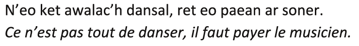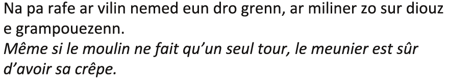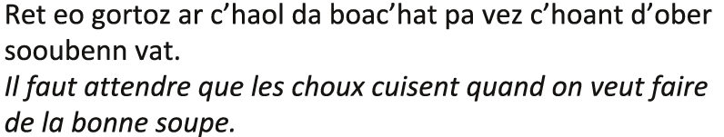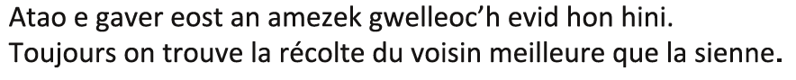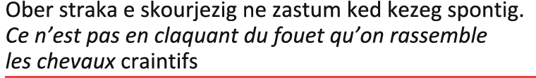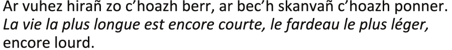 - « Saïg, alato ! N’eo ket drol, d’an oad ma’z oc’h breman. Ar gozhni eo, ha netra ken. Ha, pep hini a oar, ar gozhni zo ur c’hlenved diaes da barean ».