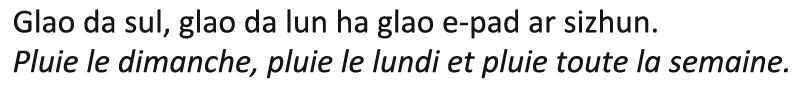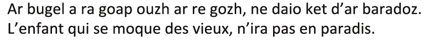 - « Ar gozhni ! Ar gozhni ! Aotroù Medisin, n’oc’h ket mat gant ho penn, fazian a reoc’h, sur eo ha n’eo ket martezhe ! Poent eo deoc’h mont d’ar skol en-dro da zeskin o micher. Sellit ouzh va c’har dehoù : honnezh zo dres memes oad hag an hini all ha n’em eus tamm chat ebet ganti ! »